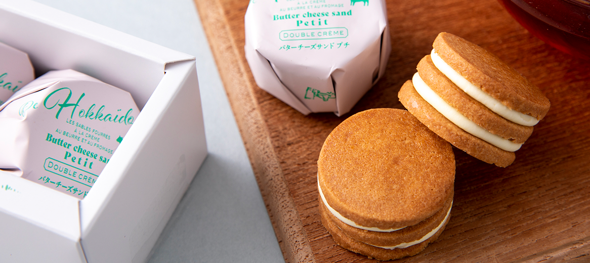 A two-layered cream sandwich made using the delicious ingredients of Hokkaido. This butter cheese sandwich is designed to be enjoyed at room temperature.