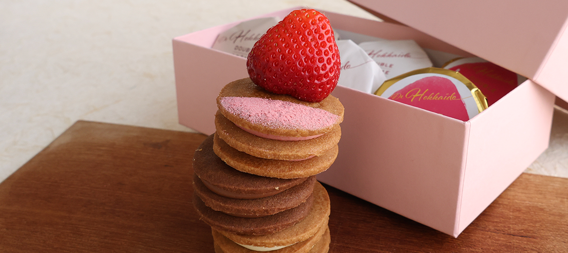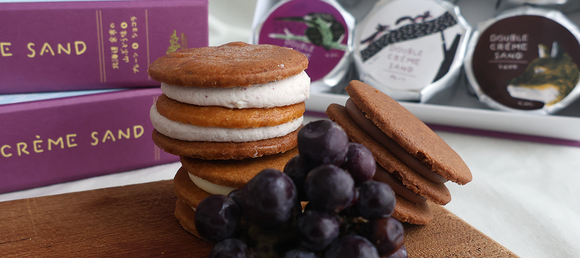 "Haskap" features plain and chocolate Breton shortbread cookies sandwiched with Hokkaido-grown haskap berry cream. The refreshing tartness and the fragrant aroma of the shortbread are a perfect match.