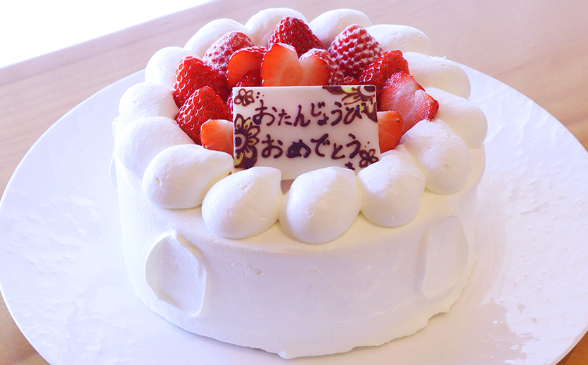 お子様のバースデーに人気。美瑛小麦を使った味わい深いスポンジ生地に、北海道産いちごを合わ