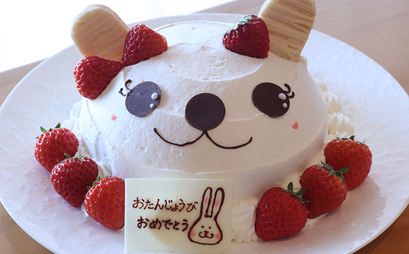 せて、純生クリームで仕上げました。白いうさぎさんのお顔をモチーフにしたケーキです。
