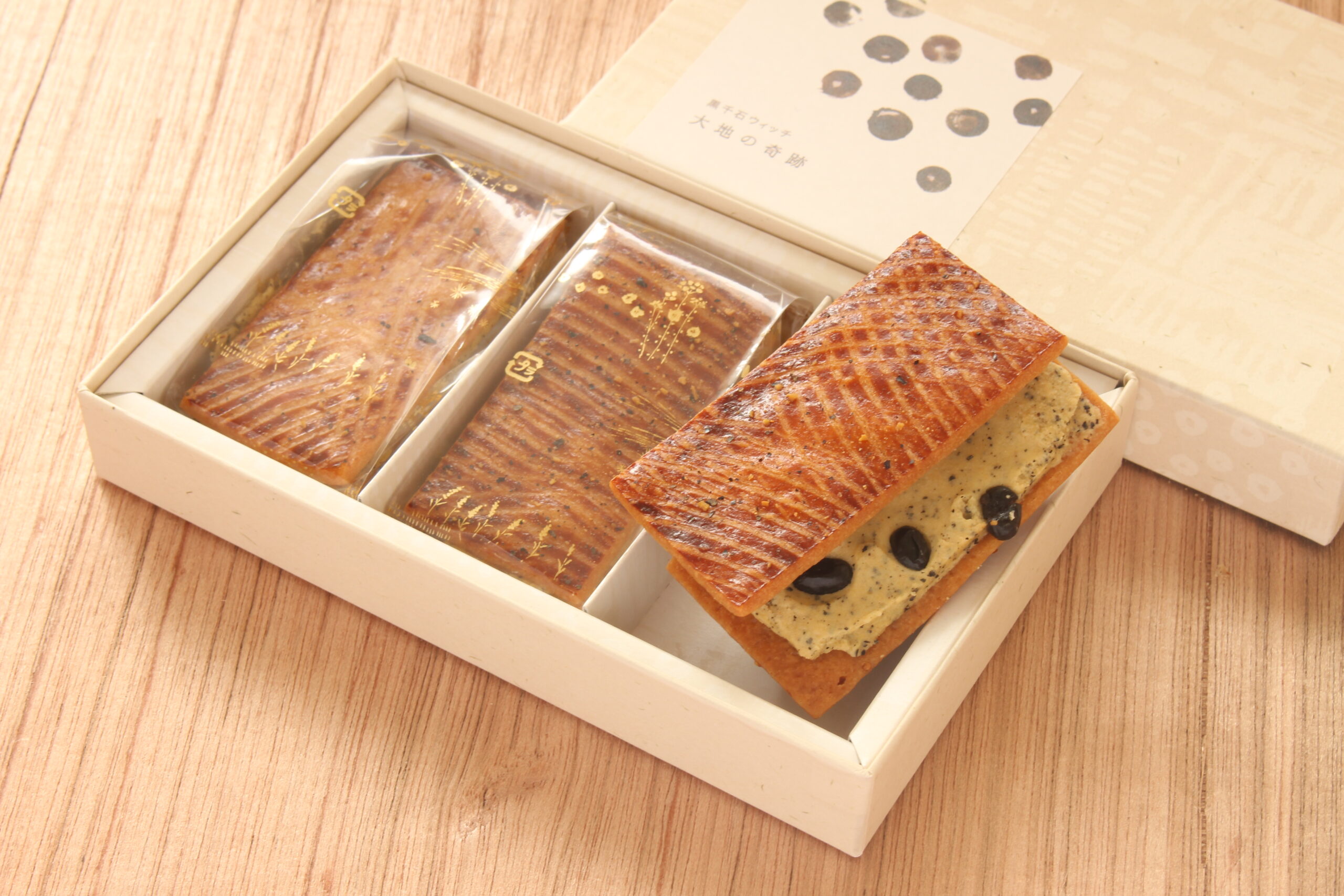 黒い小さな粒に凝縮されたコクや風味を最大限に生かしたいと、「レーズンサンド」のレーズンの代わりに黒千石をあわせたらどうだろうと発想からつくられました。